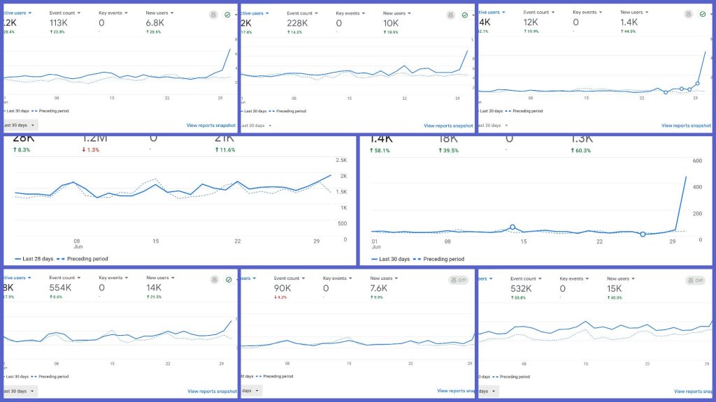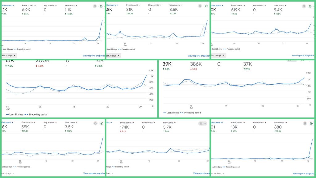 Tai realūs duomenys iš mano projektų po vakarykščio Google Core Update (kurį pats „Google“ vadina vienu svarbiausių). Projektai remiasi tik organiniu srautu – jų modelyje reklama neefektyvi. Rezultatas? +200% bendro srauto augimas.